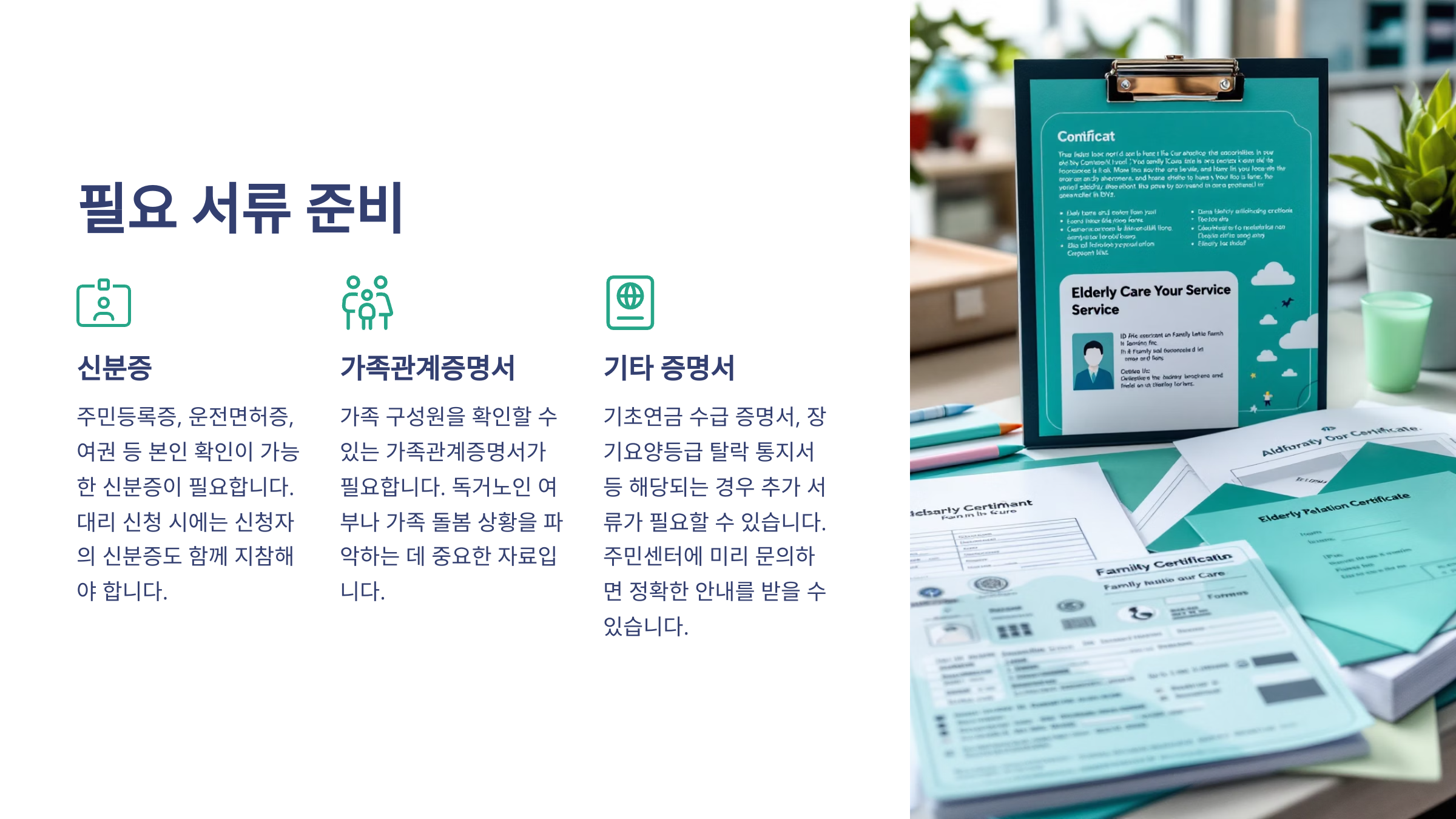 혹시 주변에 도움이 필요한 어르신이 있다면, 이 제도를 꼭 알려드리세요. 정부가 제공하는 공공서비스는 신청하지 않으면 받을 수 없습니다. 지금 바로 가까운 주민센터에 문의하여 소중한 일상을 위한 돌봄을 시작해 보세요.