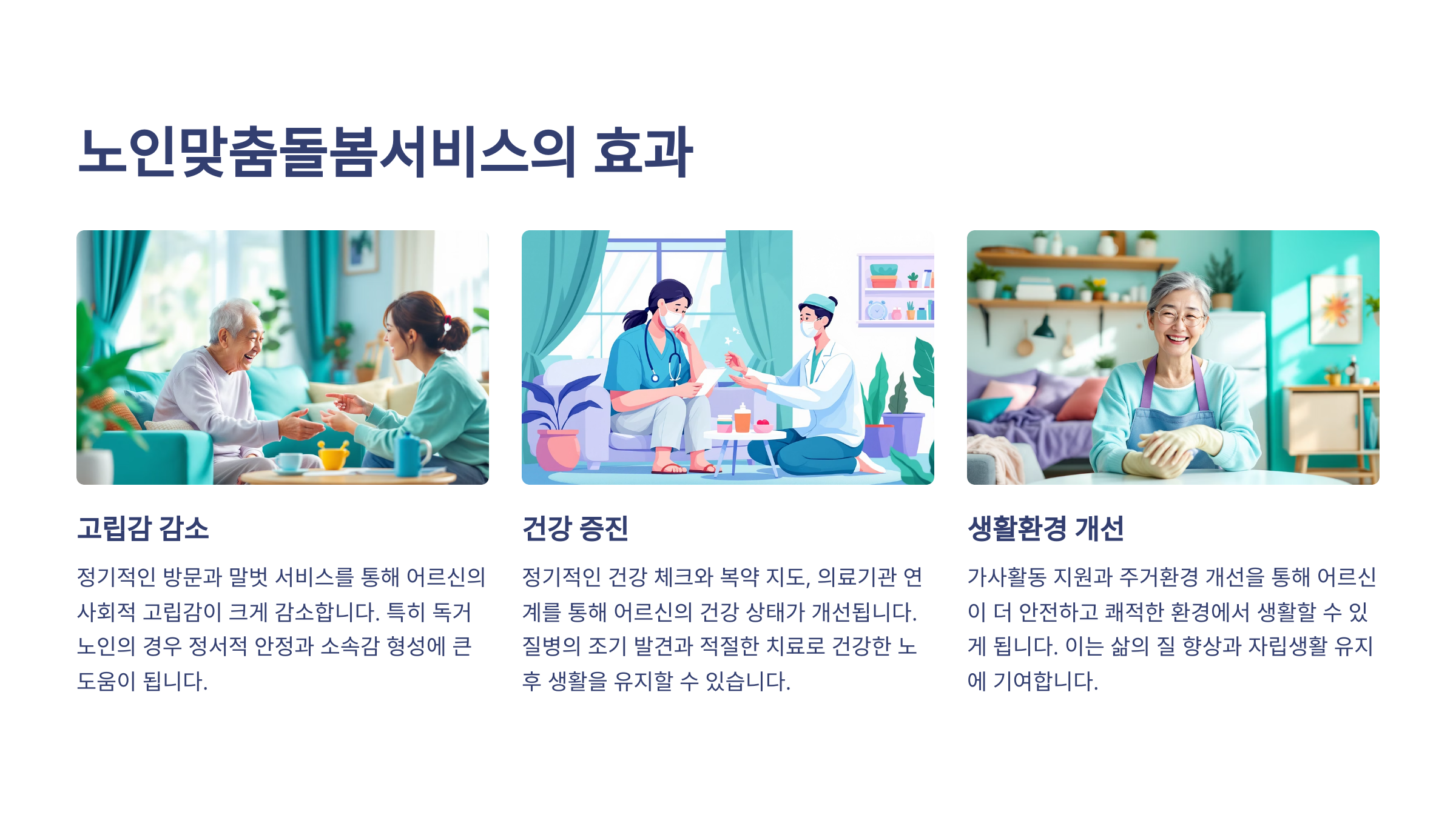 노인맞춤돌봄서비스는 단순한 '도움'이 아닌 안전망이자 삶의 동반자입니다. 특히 가족이 멀리 있거나, 거동이 불편한 어르신들에게는 큰 위로와 실질적인 도움이 됩니다.