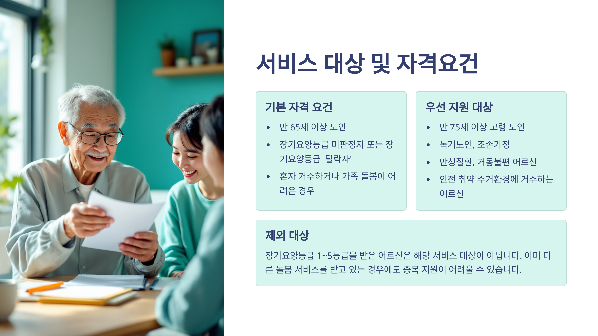 ※ 단, 이미 장기요양등급 1~5등급을 받은 어르신은 해당 서비스 대상이 아닙니다.