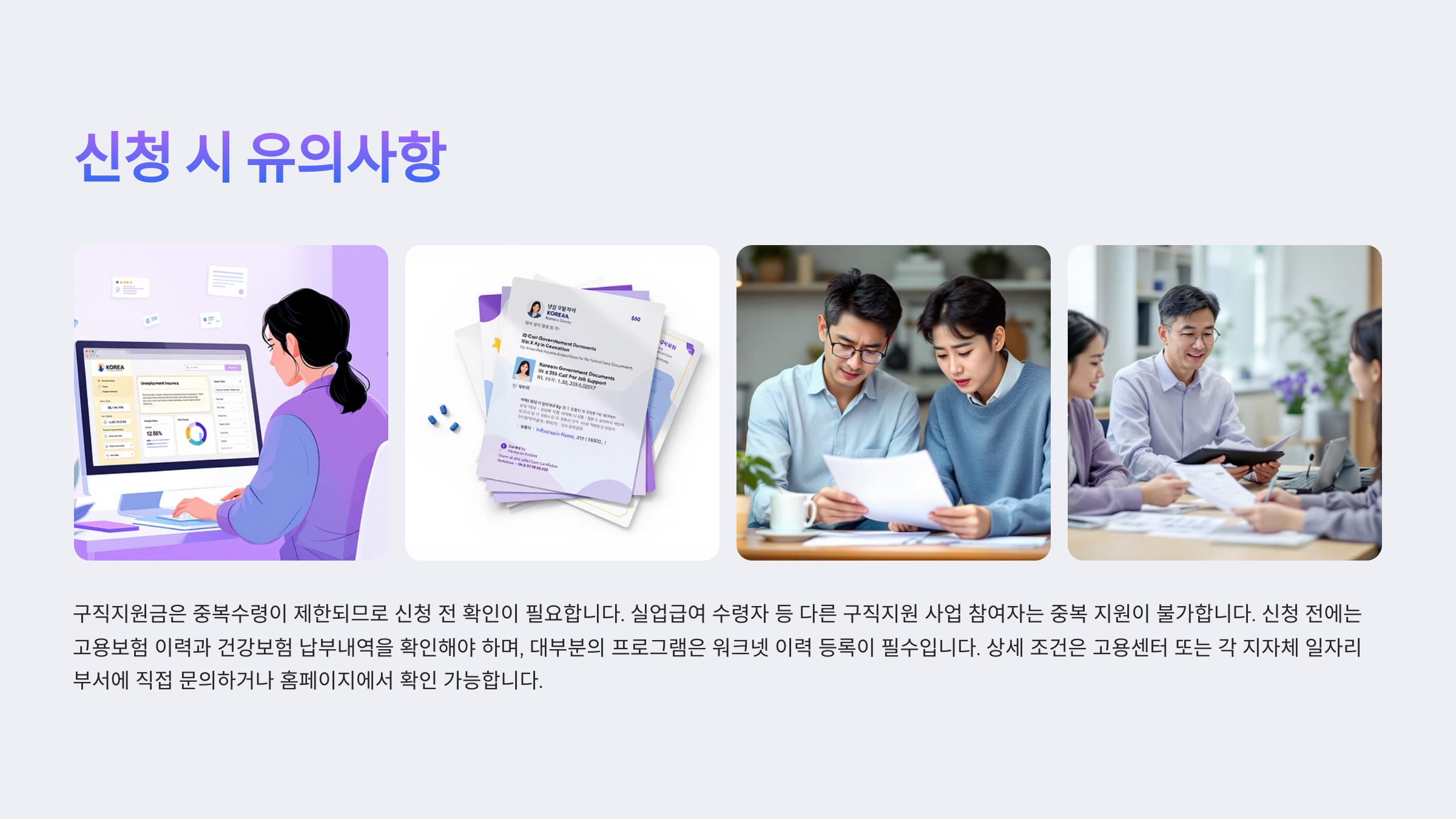 구직지원금은 중복수령이 제한되며, 신청 시 아래 사항을 꼭 확인하세요.