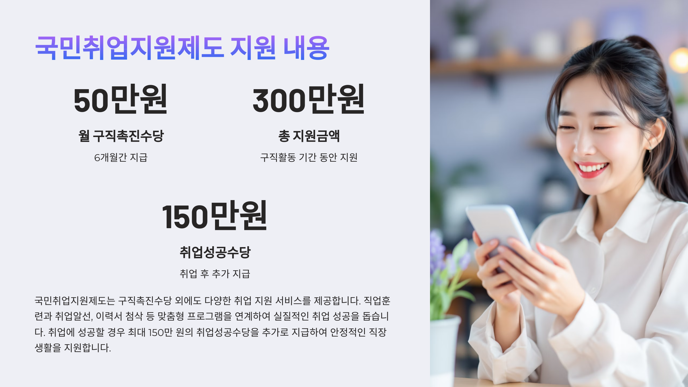 - 월 50만 원 × 6개월 구직촉진수당 지급