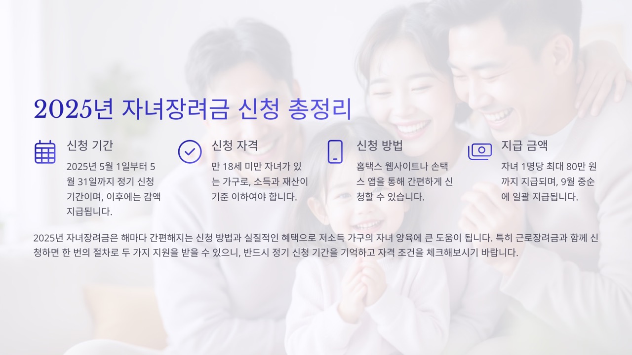 #자녀장려금 #2025자녀장려금 #자녀장려금신청방법 #자녀장려금조건 #자녀장려금자격 #자녀장려금지급일 #자녀장려금신청기간 #근로장려금 #국세청지원금 #세금혜택