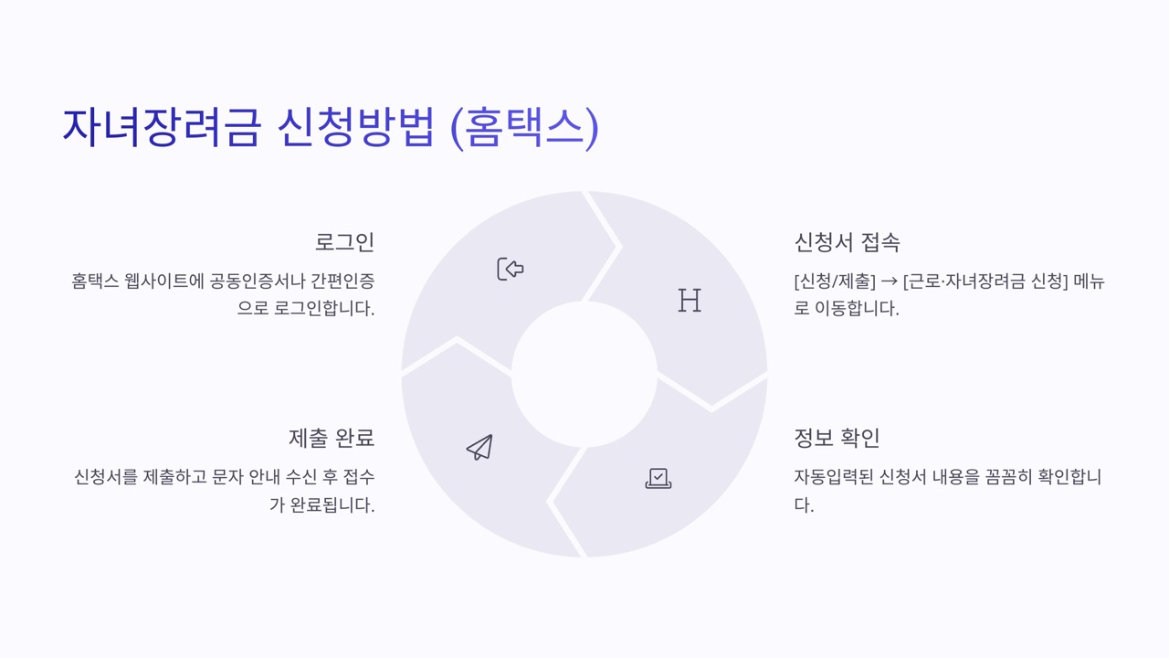 자녀장려금 신청방법은 매년 간소화되고 있어, 2025년에도 누구나 손쉽게 신청할 수 있습니다.