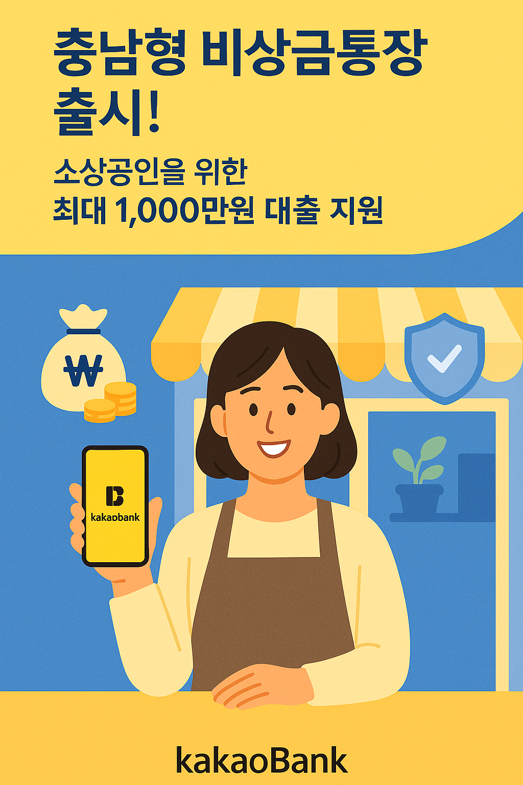 2025년 5월 20일, 충남신용보증재단과 카카오뱅크가 손잡고 소상공인과 자영업자를 위한 새로운 금융 지원 상품, 충남형 비상금통장을 출시했습니다! 복잡한 서류나 지점 방문 없이 카카오뱅크 앱에서 간편하게 최대 1,000만 원 한도의 마이너스 통장을 신청할 수 있습니다. 긴급 자금이 필요한 소상공인에게 최적화된 이 상품을 지금 바로 알아보세요!