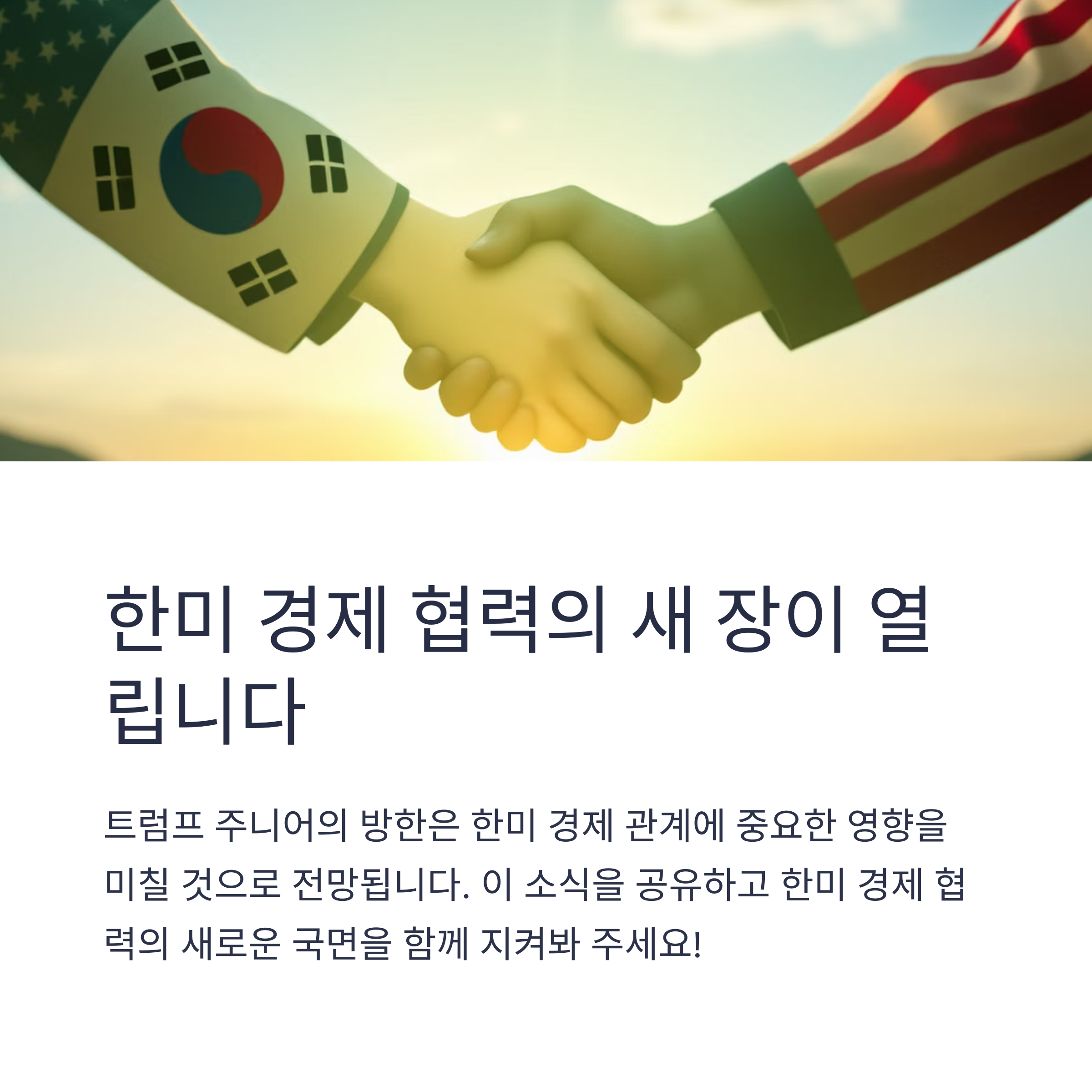 트럼프 주니어의 이번 방한은 한미 경제 협력의 새로운 장을 여는 신호탄이 될 수 있습니다. 미국의 통상 압박이 강화되는 가운데, 한국 재계가 보여준 이러한 선제적 대응은 앞으로의 한미 경제 관계에 중요한 영향을 미칠 것으로 전망됩니다.