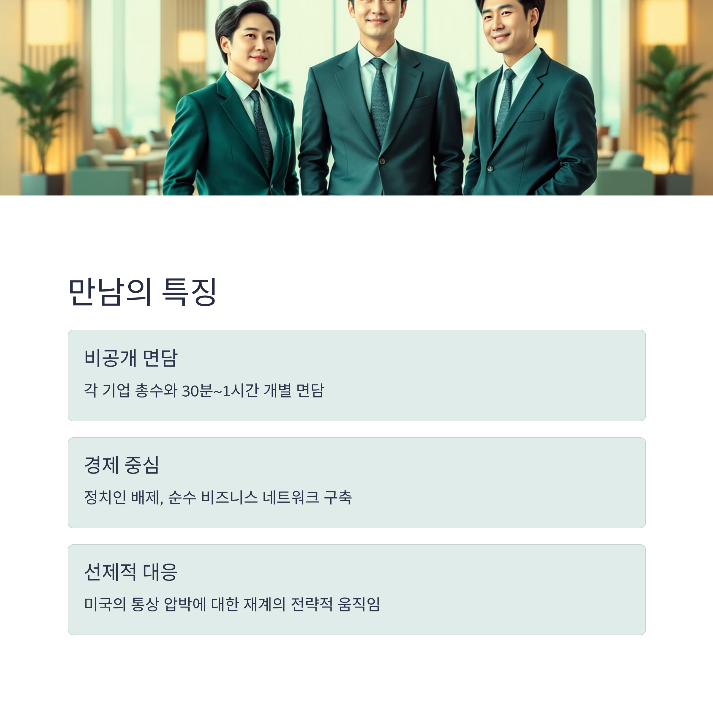 - 통상 압박 대응: 트럼প 2기 행정부의 강화된 보호무역 정책과 통상 압박에 대응하기 위한 한국 재계의 선제적 움직임으로 볼 수 있습니다.