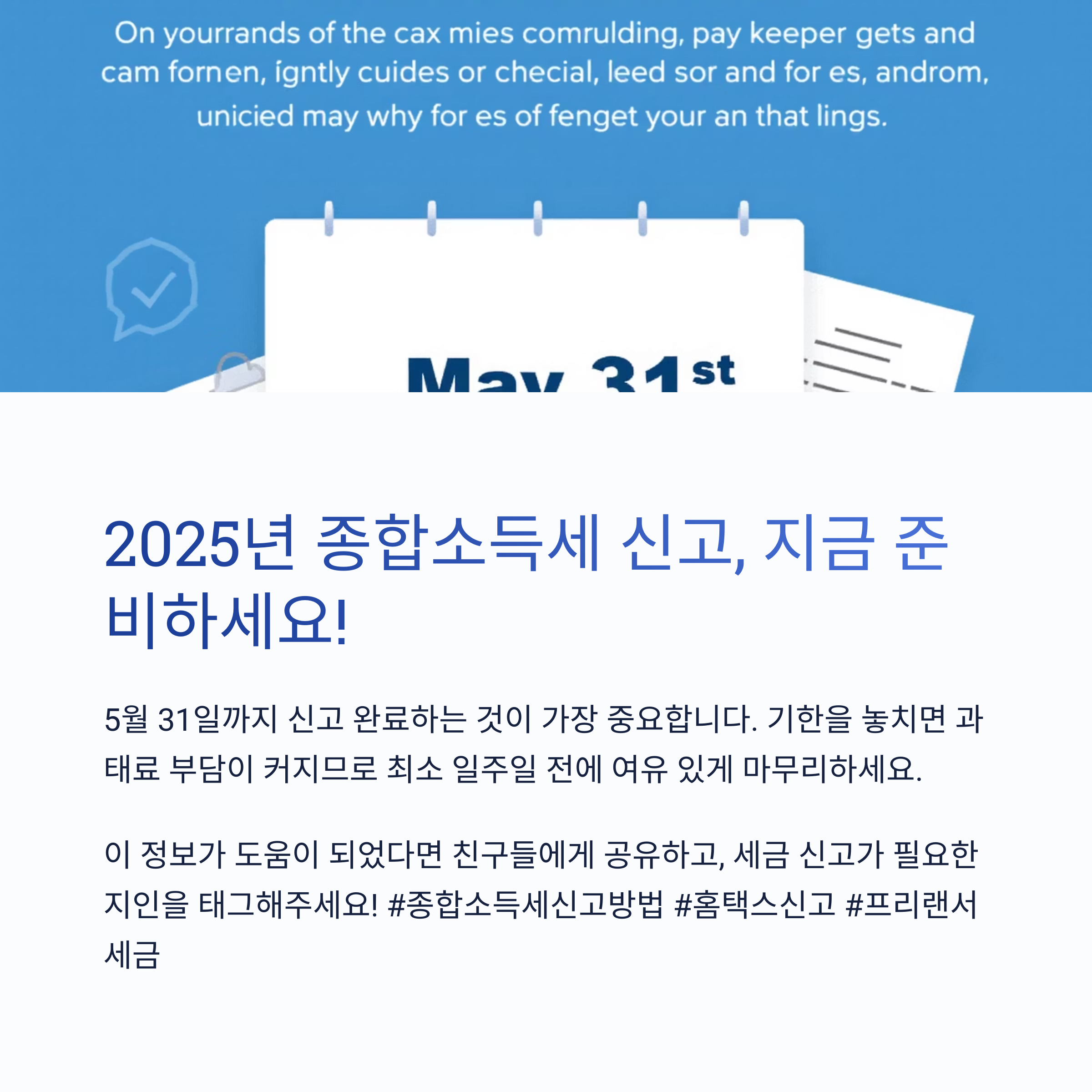 "가장 중요한 건 5월 31일까지 신고 완료하는 것입니다." 기한을 놓치면 과태료 부담이 커지므로 최소 일주일 전에 여유 있게 마무리하세요.