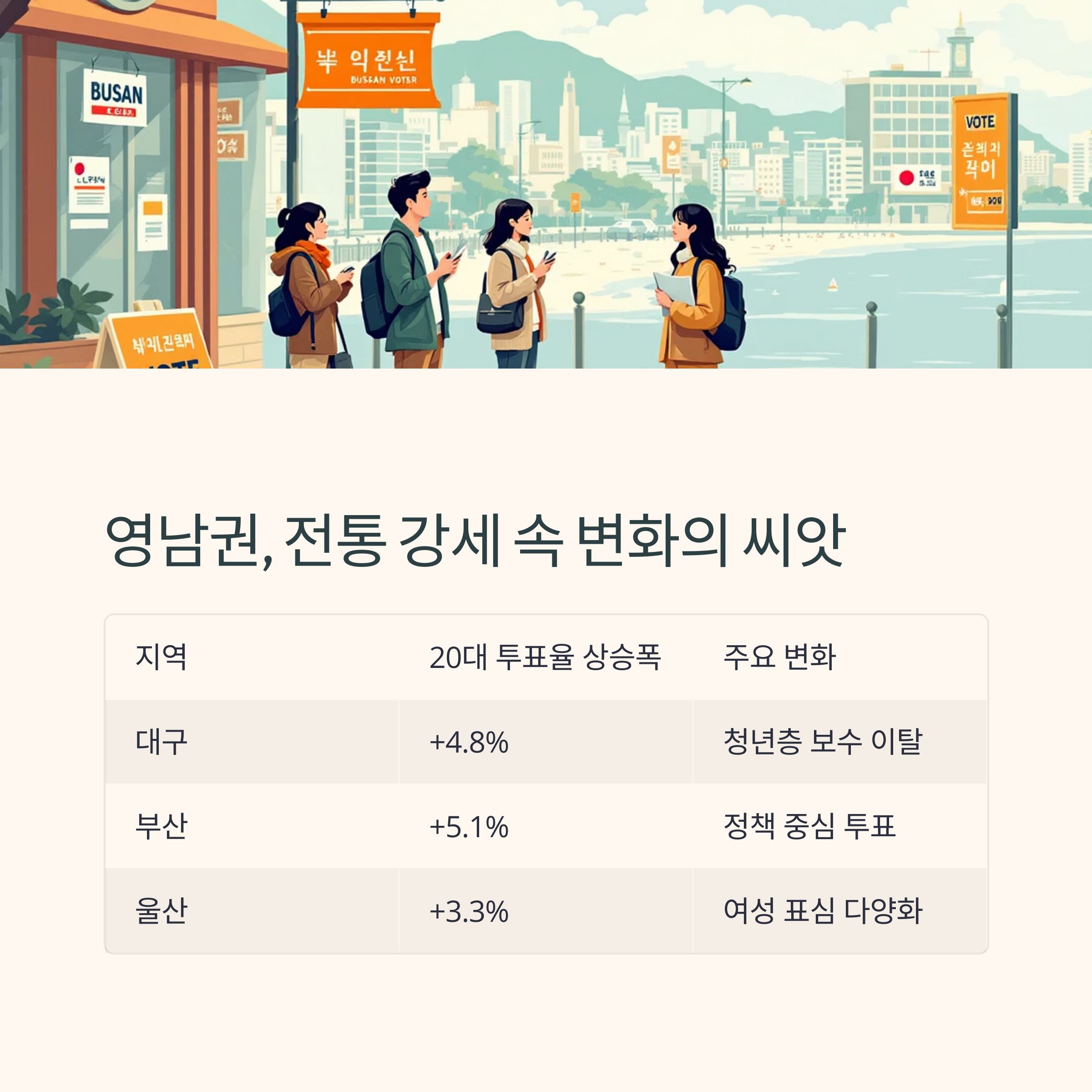 | 영남권 | 청년층 표심 이탈 조짐 | 정책 이슈로 관심 이동 |